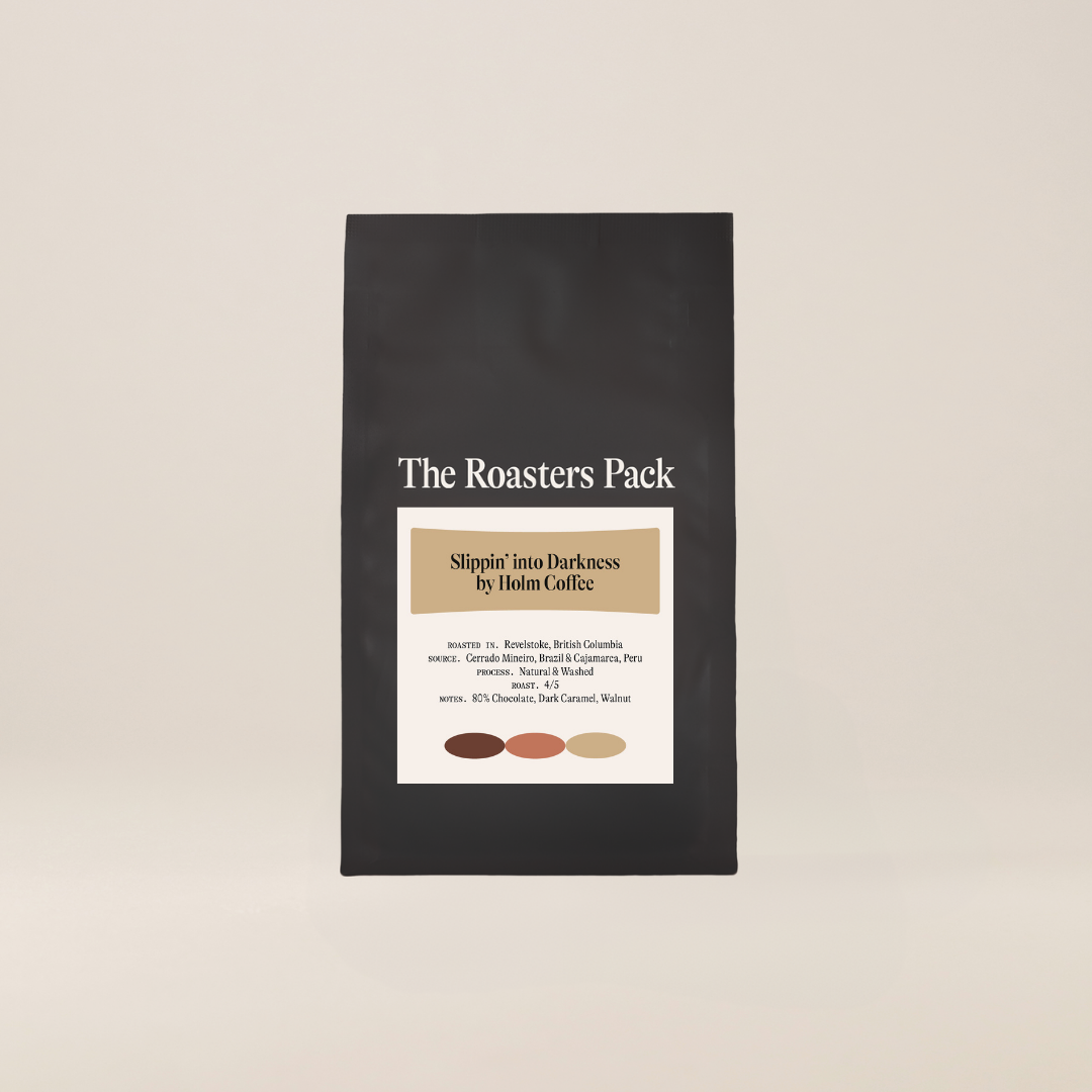 Holm Coffee is a small-batch roastery in Revelstoke, BC, founded by partners Izzy Lamoureux and Simon Harper during the pandemic. After years in hospitality — Izzy in the wine world and Simon in cocktails — the chaos of COVID pushed them to rethink what they wanted their lives to look like. Instead of opening the café Izzy had always imagined, they spent those early years roasting, tasting, and learning everything they could about coffee, letting their flavour backgrounds guide the way. The result is Holm: a roastery built on intention, expression, and craft — and the slower, more meaningful lifestyle they set out to create together.