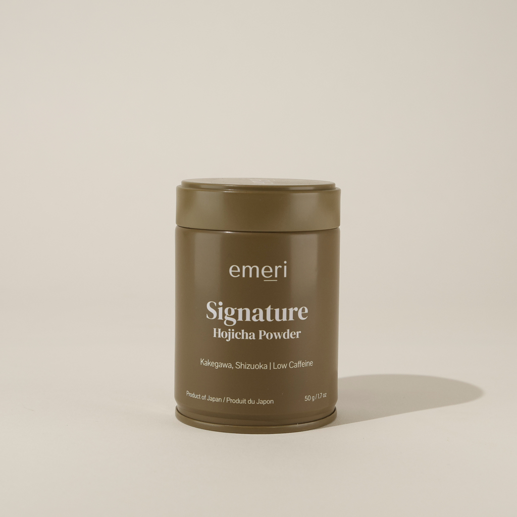 Meet Emeri's Hojicha. Slow-roasted, finely ground green tea leaves and stems sourced from the hills of Shizuoka, Japan. This a low-caffeine twist on traditional green tea, delivers comforting, nutty, and caramel flavours.