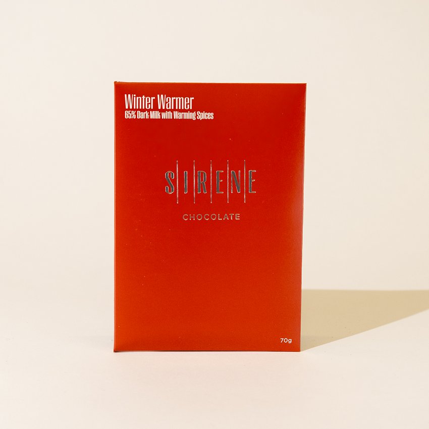 Meet Sirene Chocolate's Winter Warmer chocolate bar. You can almost feel the warm Tanzanian sun caress your face as you savour this bar. This is a dark milk made with Kokoa Kamili's delicious cocoa beans and a little nutmeg and clove added to help you warm up during the winter cool.
