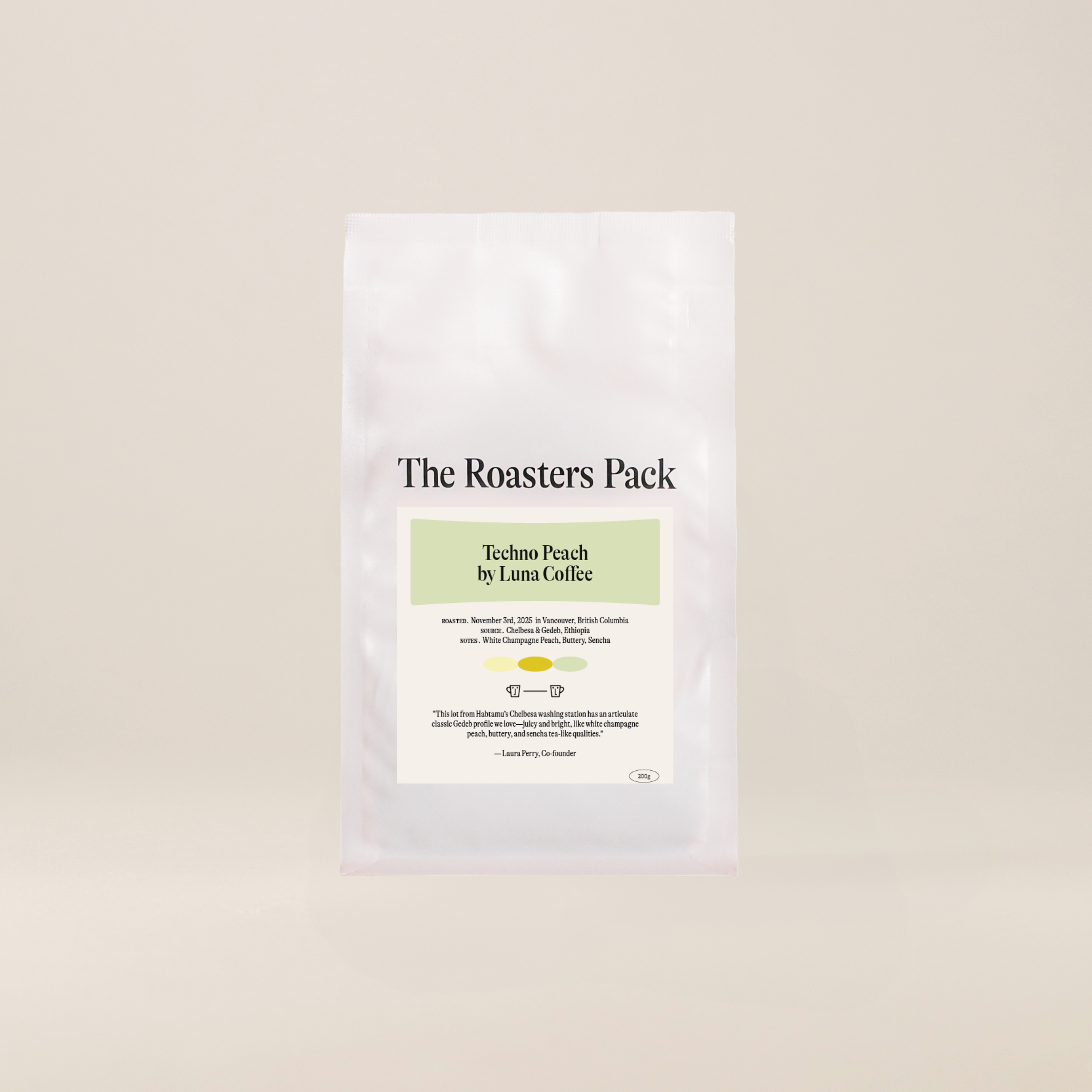 "This lot from Habtamu's Chelbesa washing station has an articulate classic Gedeb profile we love—juicy and bright, like white champagne peach, buttery, and sencha tea-like qualities. We use additional names for coffees sparingly these days, but when we tasted this lot, we had to crown it 'Techno Peach', reminding Nate and I of one of our first coffee releases for Luna nearly 8 years ago."